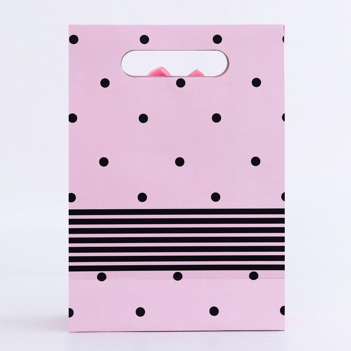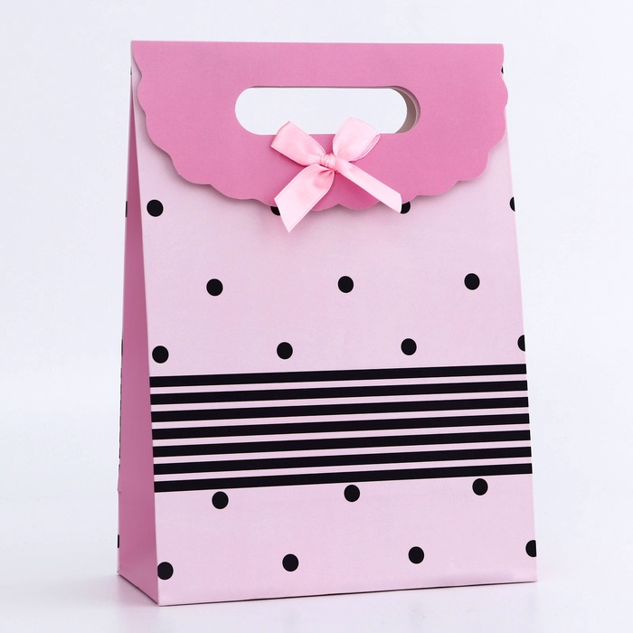 Подарочная коробка - пакет, упаковка с вырубной ручкой, «Розовый горох» , 19×9×27 см — Характеристики