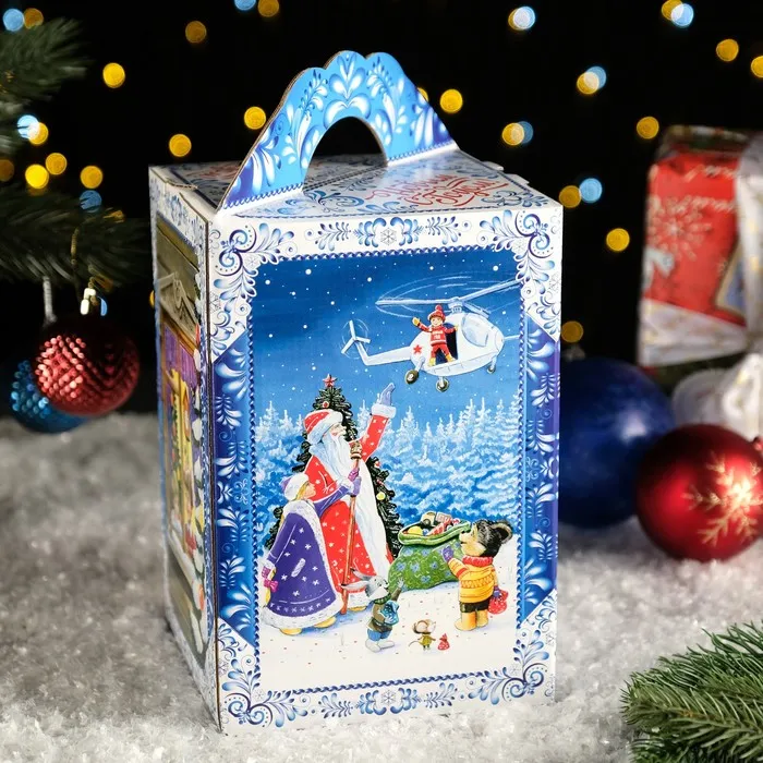 Упаковка для подарка является неотъемлемым атрибутом любого подарка. Подобранная со вкусом упаковка придаст подарку еще большую ценность. Материал изделия - картон. Коробка складная прекрасно подойдет для оформления подарка на - Новый год. Наполнить можно конфетами и различными новогодними сувенирами.