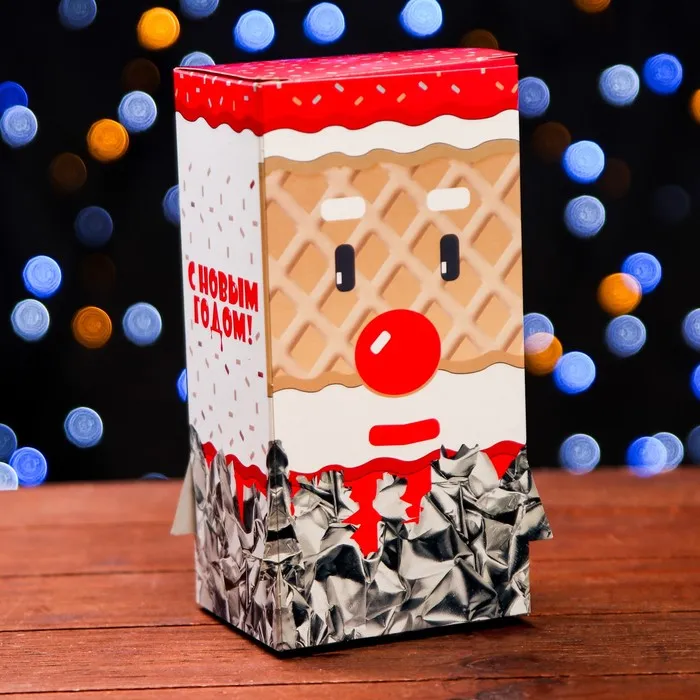 Коробка выполнена из качественных материалов, которые обеспечивают сохранность содержимого. Она имеет яркий и красочный дизайн, который отражает атмосферу Нового года.
