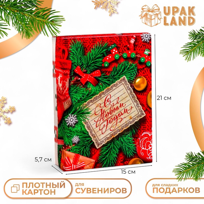 Коробка подарочная новогодняя складная, крышка - дно без окна, «Вязанка», 21×15×5.7 см