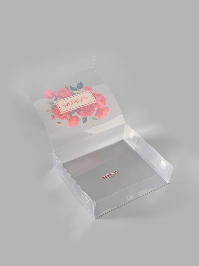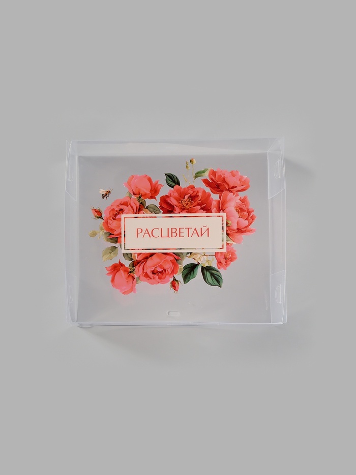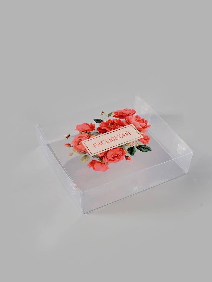 Коробка складная, крышка-дно, с окном, крафт, 15×15×6.5 см