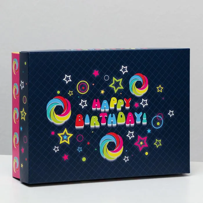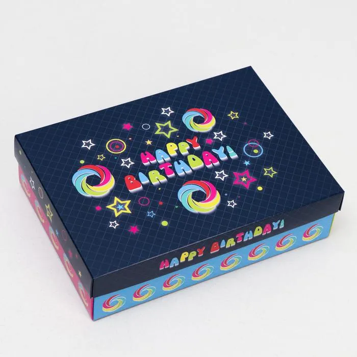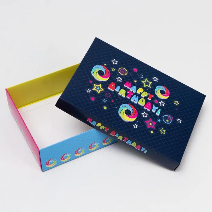 Подарочное оформление: Эта коробка станет оригинальным акцентом в оформлении подарка на день рождения или другой праздник. Яркие цвета и уникальный дизайн добавляют веселья и радости в каждый момент торжества. Превратите дарение подарков в настоящий праздник с этой праздничной упаковкой и порадуйте близких стильным сюрпризом!