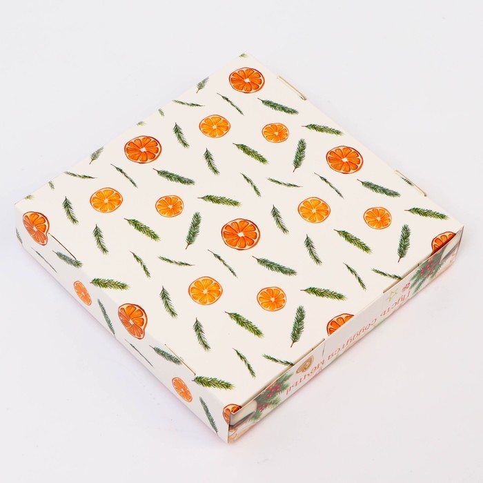 Сборная конструкция упрощает сборку и хранение коробок, а её элегантный внешний вид добавляет праздничного настроения и делает упаковку особенно запоминающейся. Эта коробка станет отличным выбором для упаковки подарков, угощений или сувениров, добавляя изысканности и радости в каждый момент праздника.