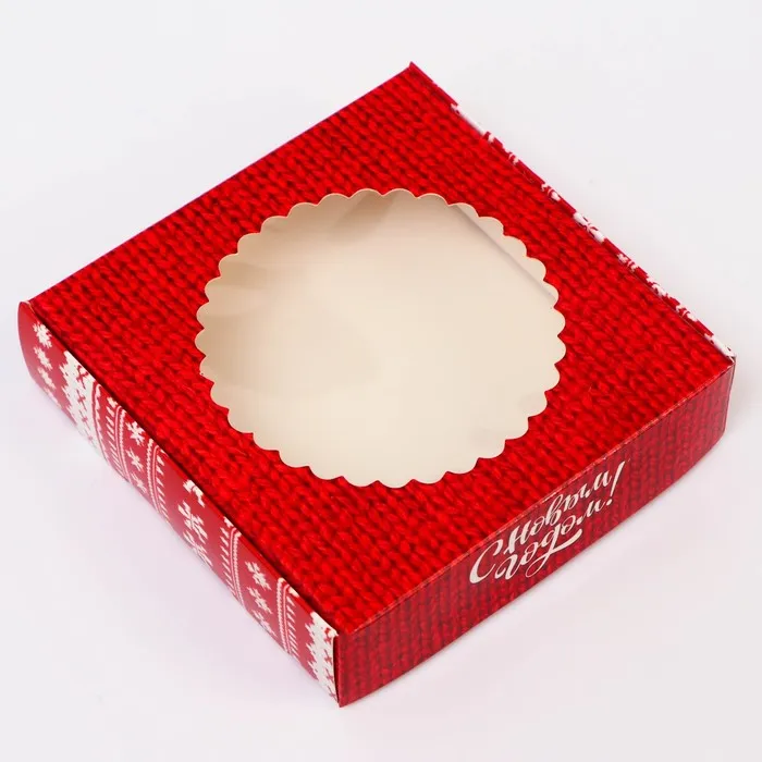 Подарочная сборная коробка с окном в новогоднем дизайне — это идеальная упаковка для кондитерских изделий, подарков и сувениров в праздничный сезон. Размеры и конструкция коробки позволяют удобно разместить различные виды сладостей, мелкие подарки или уникальные сувениры, обеспечивая их надежную защиту и привлекательное представление.