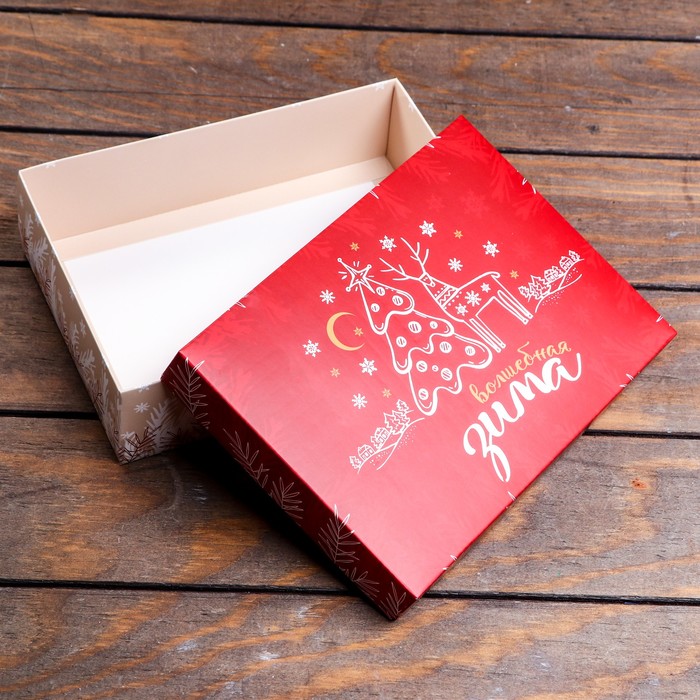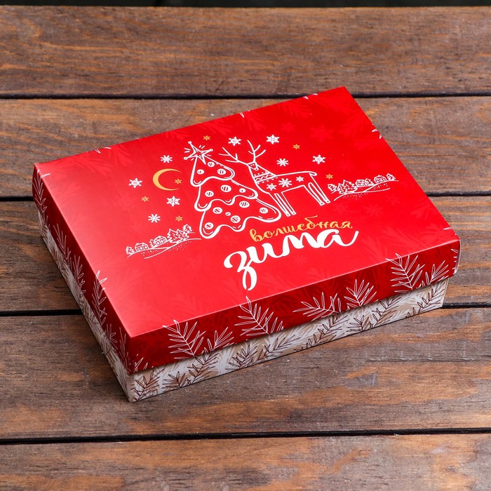 Коробка складная прекрасно подойдет для оформления подарка на Новый год.