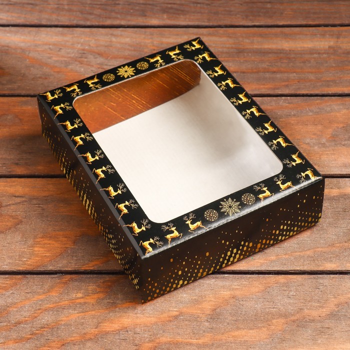Подарочная коробка складная, новогодняя «Олени», 18×15×5 см — Характеристики