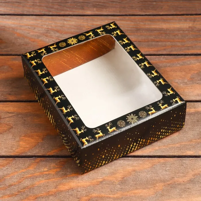 - Удобство и функциональность: Складной механизм позволяет легко собирать и разбирать коробку, упрощая хранение и транспортировку. Окошко на крышке позволяет заглянуть внутрь и мгновенно вызывать интерес к содержимому.