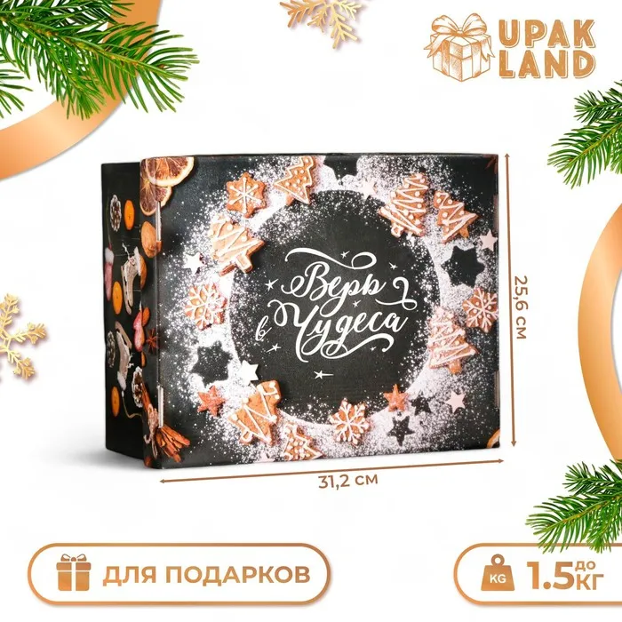 Подарочная коробка складная, новогодняя "Рождественское настроение", 31,2 х 25,6 х 16,1 см. — Характеристики