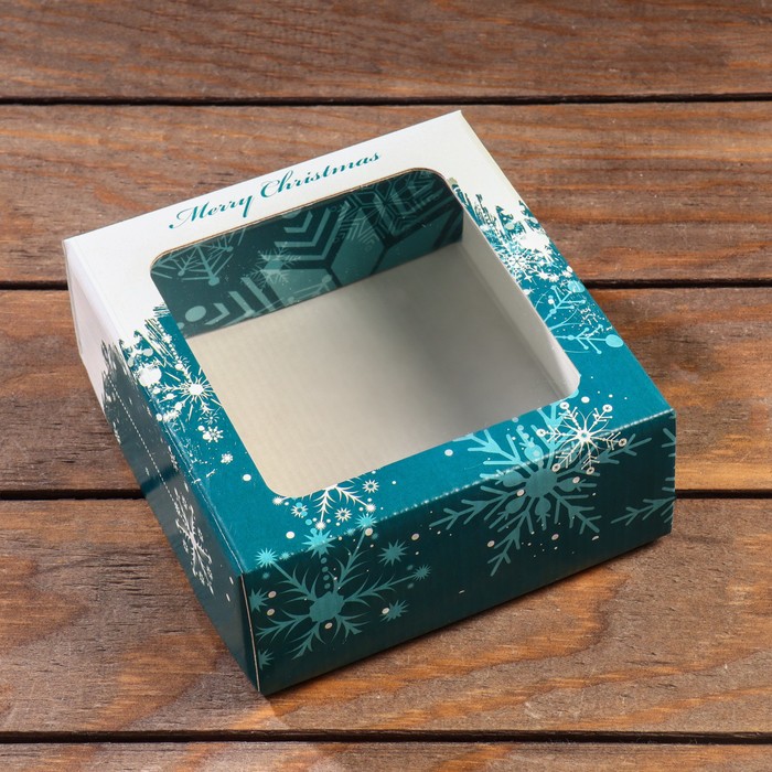 Подарочная коробка складная, новогодняя «Снежинки Merry Christmas», 14.5×14.5×6 см — Характеристики