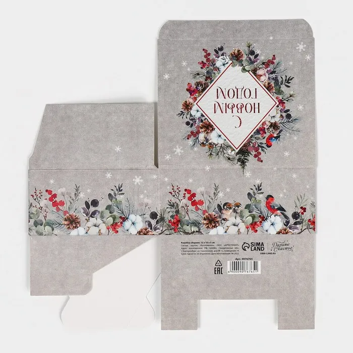 Подарочная коробка складная, новогодняя«Новогодняя акварель», 12 х 10 х 5 см, Новый год — Характеристики