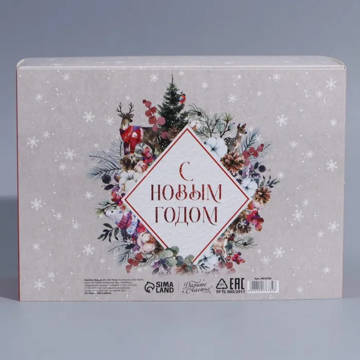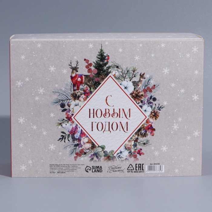 Подарочная коробка складная, новогодняя«Новогодняя акварель», 25 х 18 х 10 см, Новый год — Характеристики