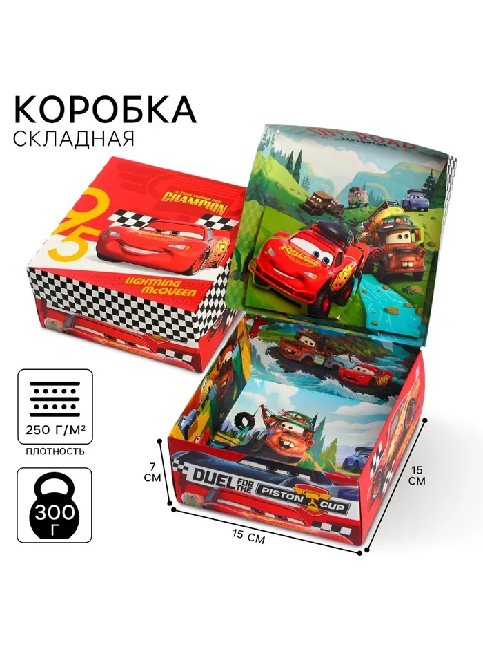 Подарочная коробка складная с 3Д «Чемпион», Тачки, 15 х 15 х 7 см — Характеристики