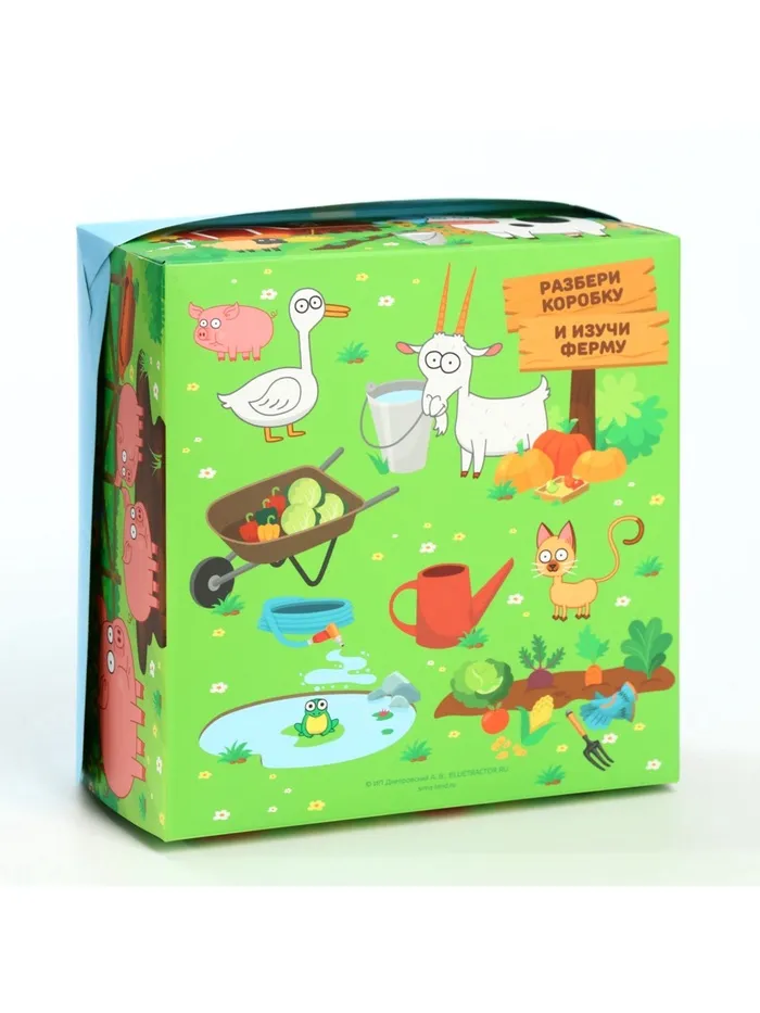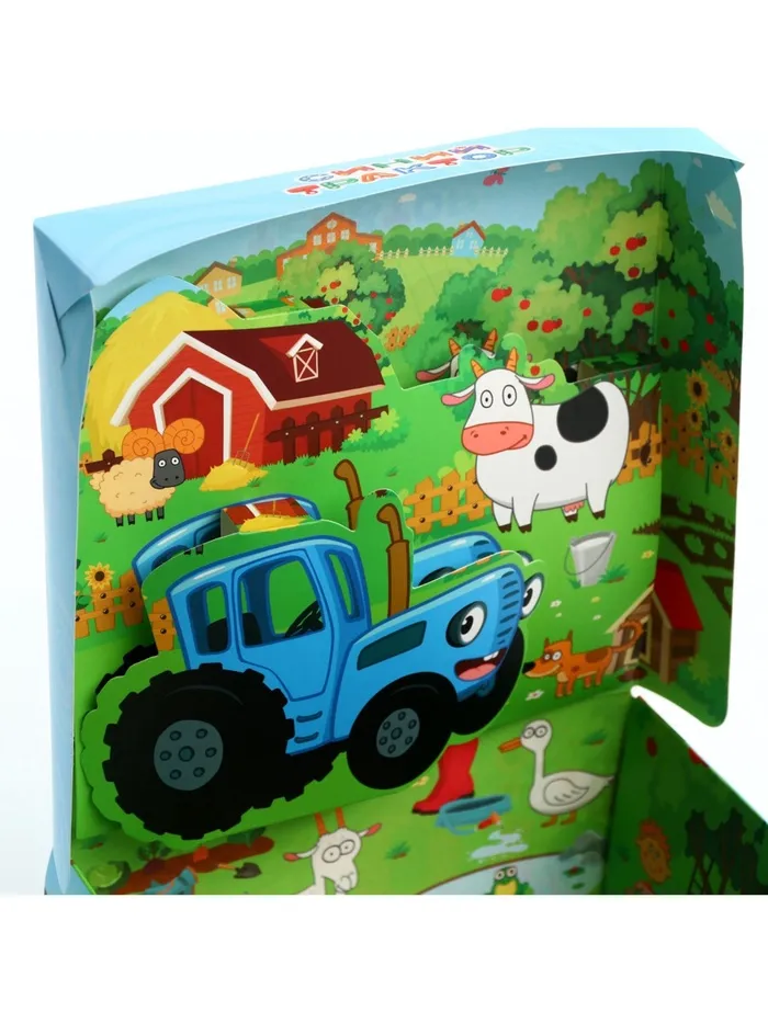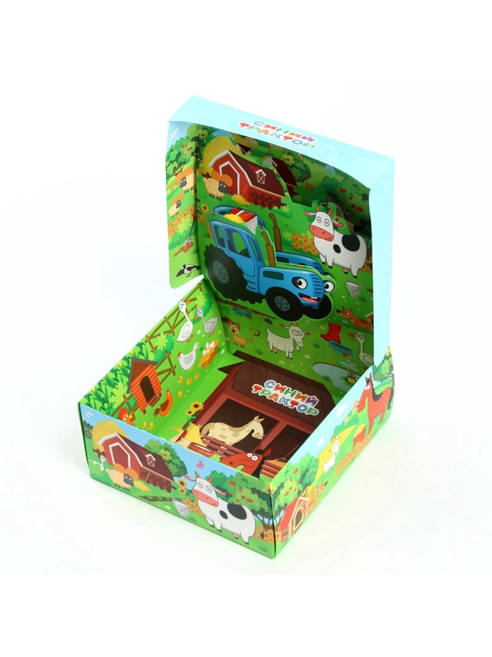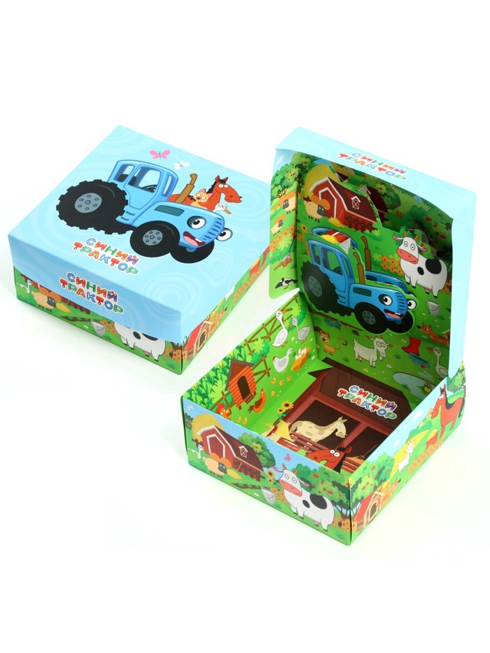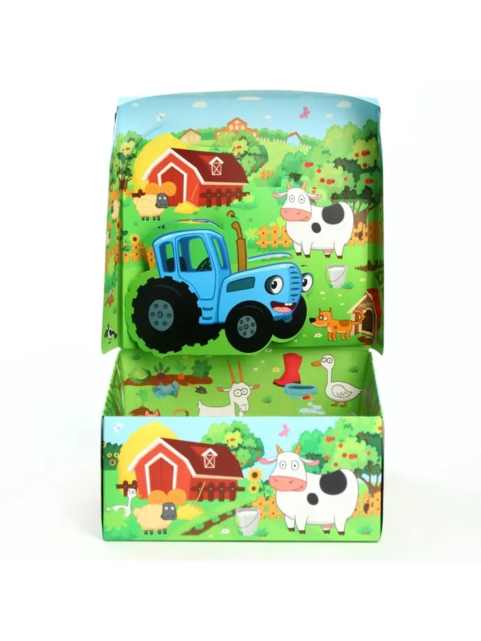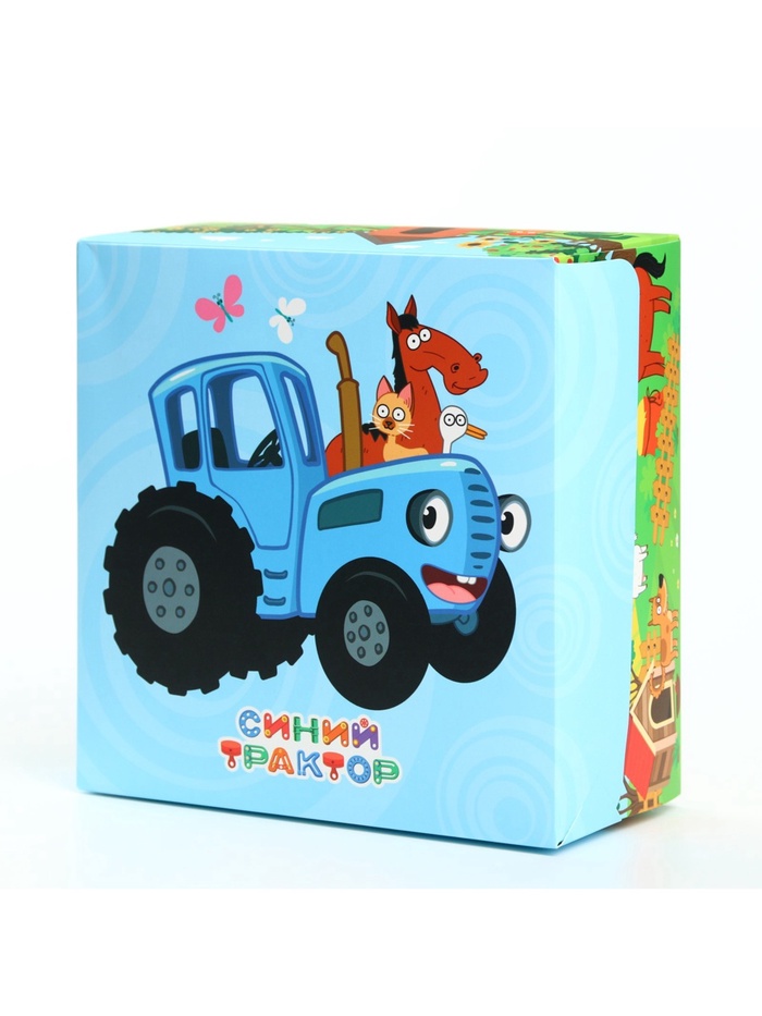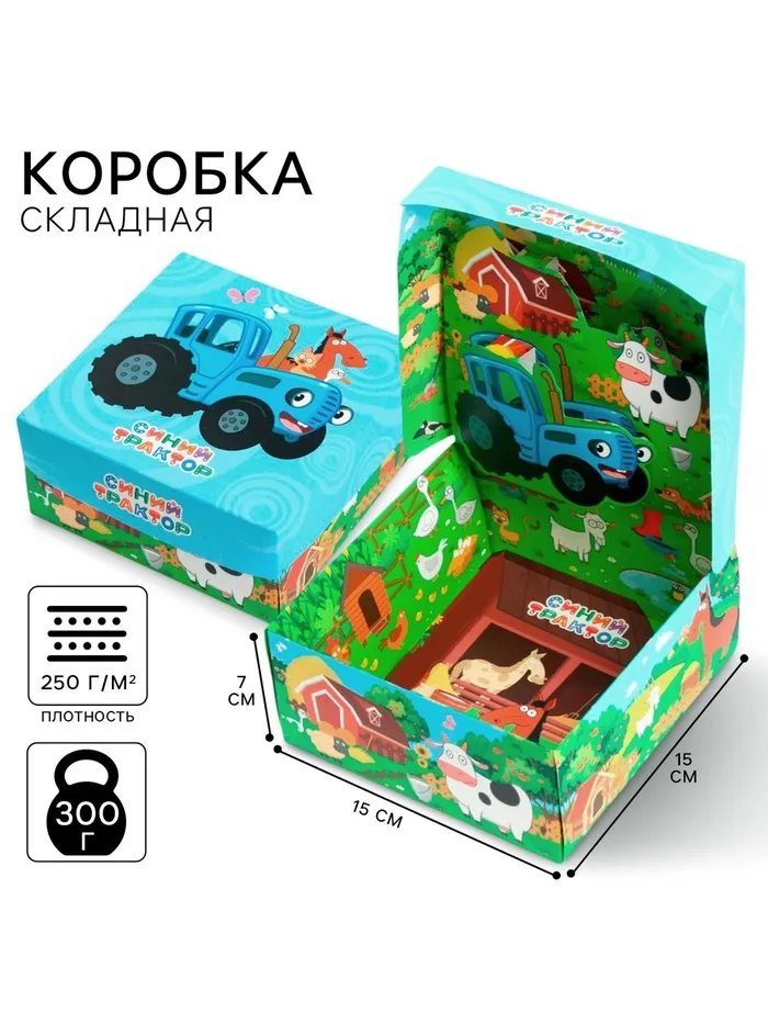 Подарочная коробка складная с 3Д, Синий трактор, 15х15х7 см — Характеристики
