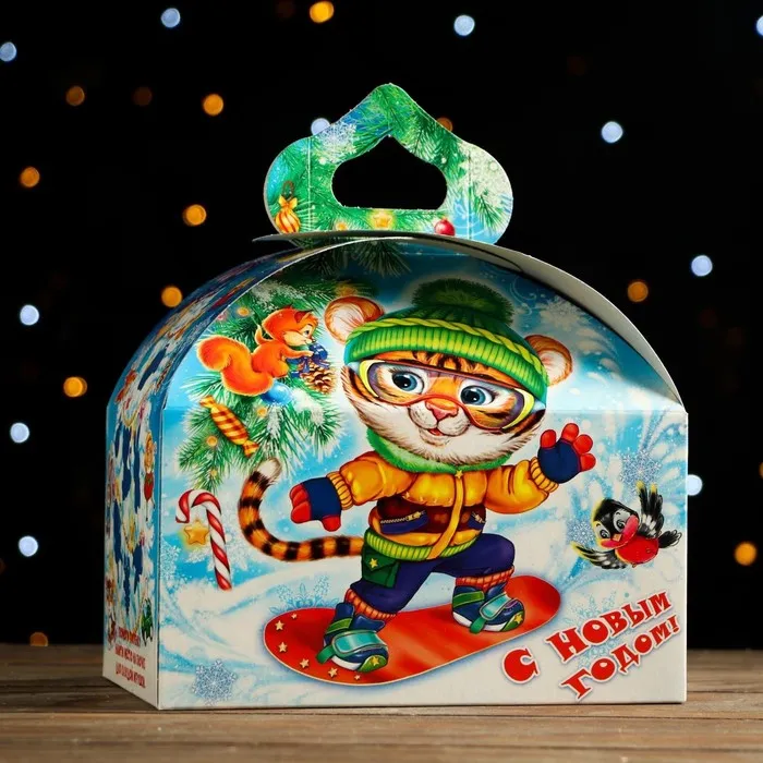 Новый год - время дарить и получать подарки. Детская подарочная коробка предназначена для упаковки конфет, сладких кондитерских наборов, или игрушек. Благодаря своему оригинальному дизайну и привлекательному внешнему виду коробка создаст праздничное настроение ребёнку и не оставит его равнодушным Она легко собирается и выдерживает указанный вес вложения.