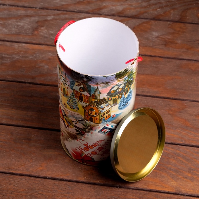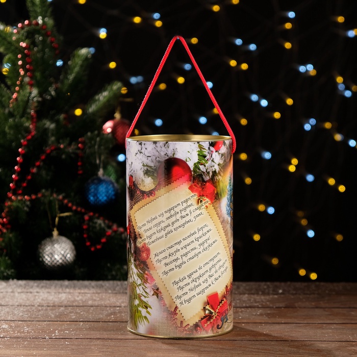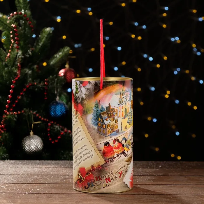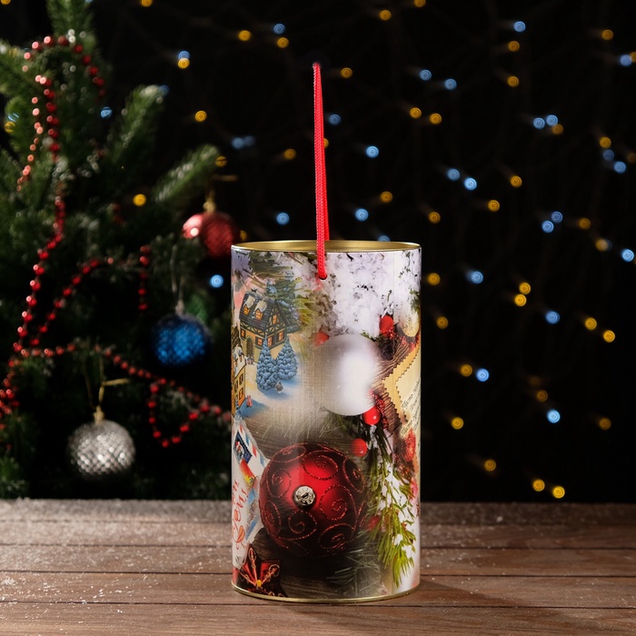 Подарочная туба выполнена из плотного картона и металла. Изделие оформлено красочным изображением. Туба оснащена крышкой. В комплект входит подвесное декоративное украшение.