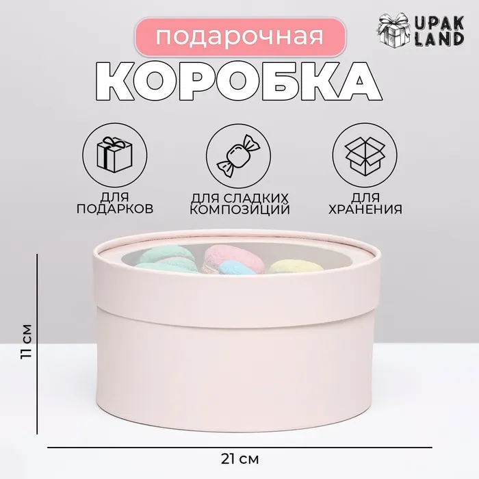 Подарочная коробка тубус Frilly пудра, завальцованная с окном, 21×11 см — Характеристики