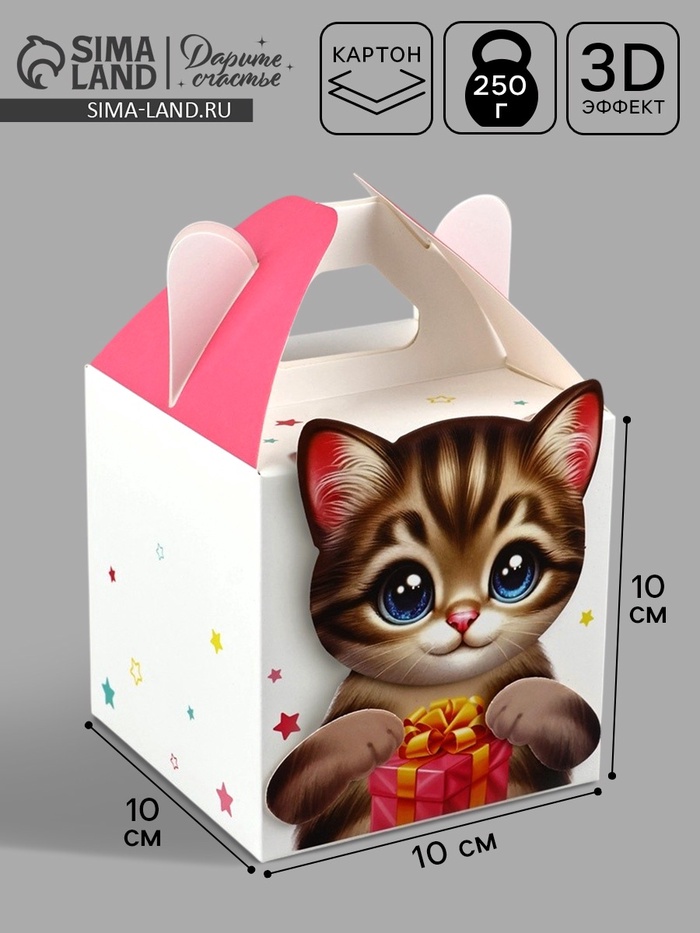 Подарочная коробка, упаковка «Котик» 10×10×10 см — Характеристики