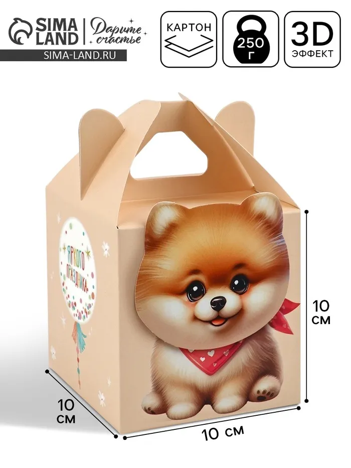 Подарочная коробка, упаковка «Милый шпиц» 10×10×10 см — Характеристики