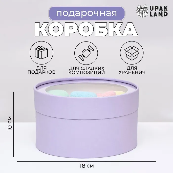Подарочная коробка Wewak бледно-фиолетовая, завальцованная с окном, 18×10 см — Характеристики