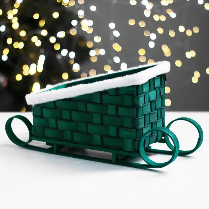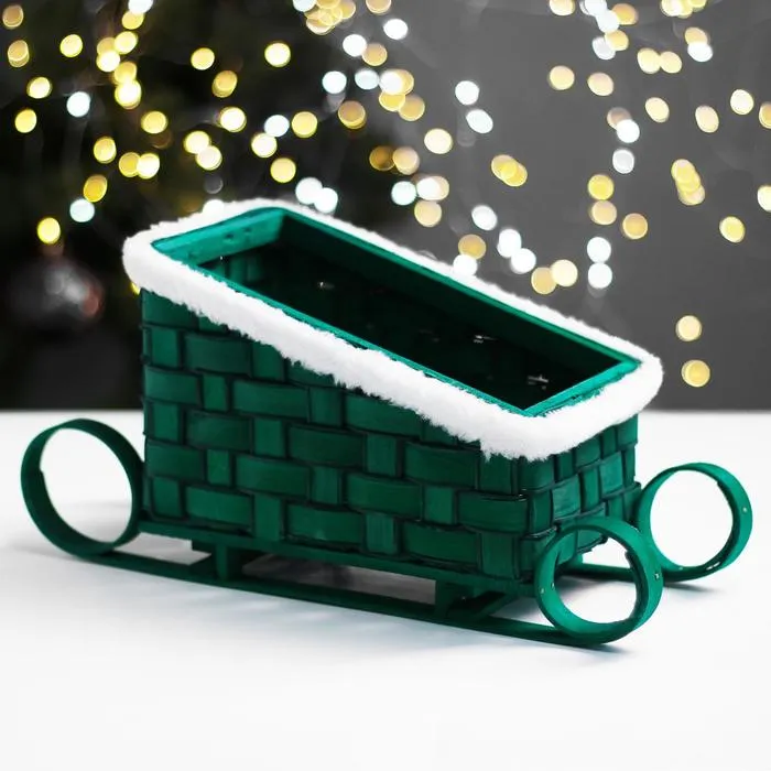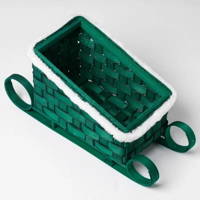Подарочная корзина «Сани», кашпо для цветов, зелёное, 23×13.5×10.5/16.5 см, шпон — Характеристики