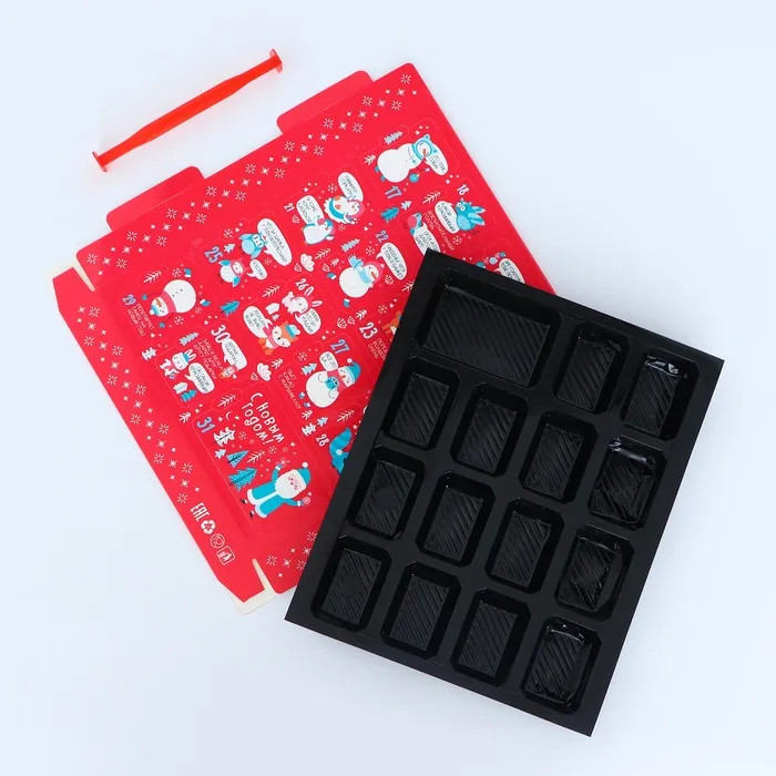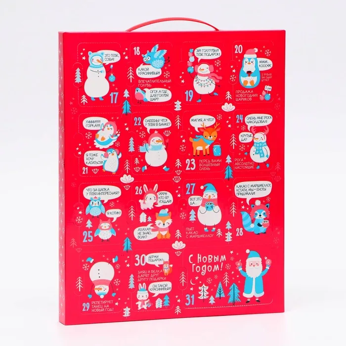 Коробка выполнена из качественных материалов, которые обеспечивают сохранность содержимого. Она имеет яркий и красочный дизайн, который отражает атмосферу Нового года.