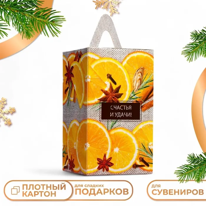 Подарочная новогодняя коробка «Апельсинки», упаковка, 10×10×18 см — Характеристики