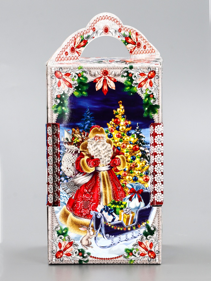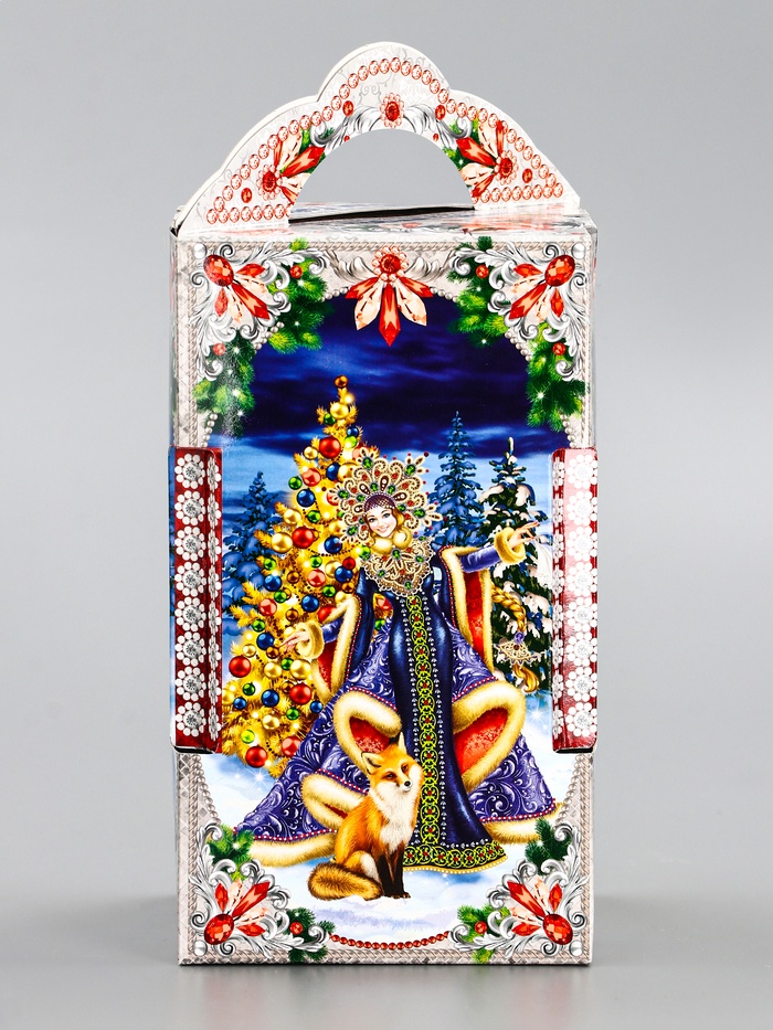 Создайте атмосферу новогоднего чуда! Коробка «Чудесный» — это яркая упаковка для сладких подарков в виде нарядного сундучка. Разноцветный дизайн с праздничными элементами создаёт ощущение волшебства и радости.