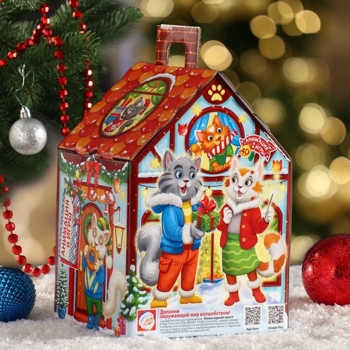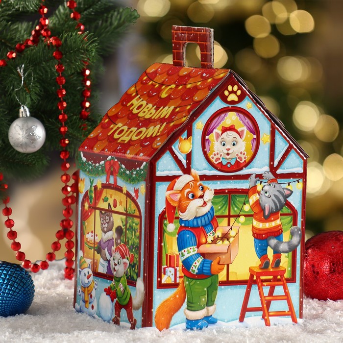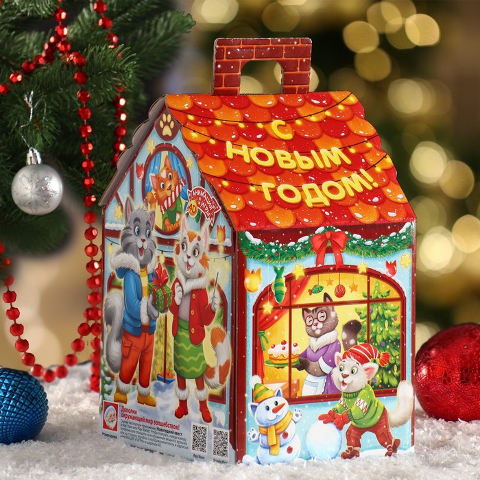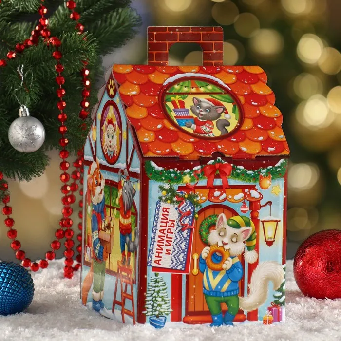 Коробка выполнена из качественных материалов, которые обеспечивают сохранность содержимого. Она имеет яркий и красочный дизайн, который отражает атмосферу Нового года.