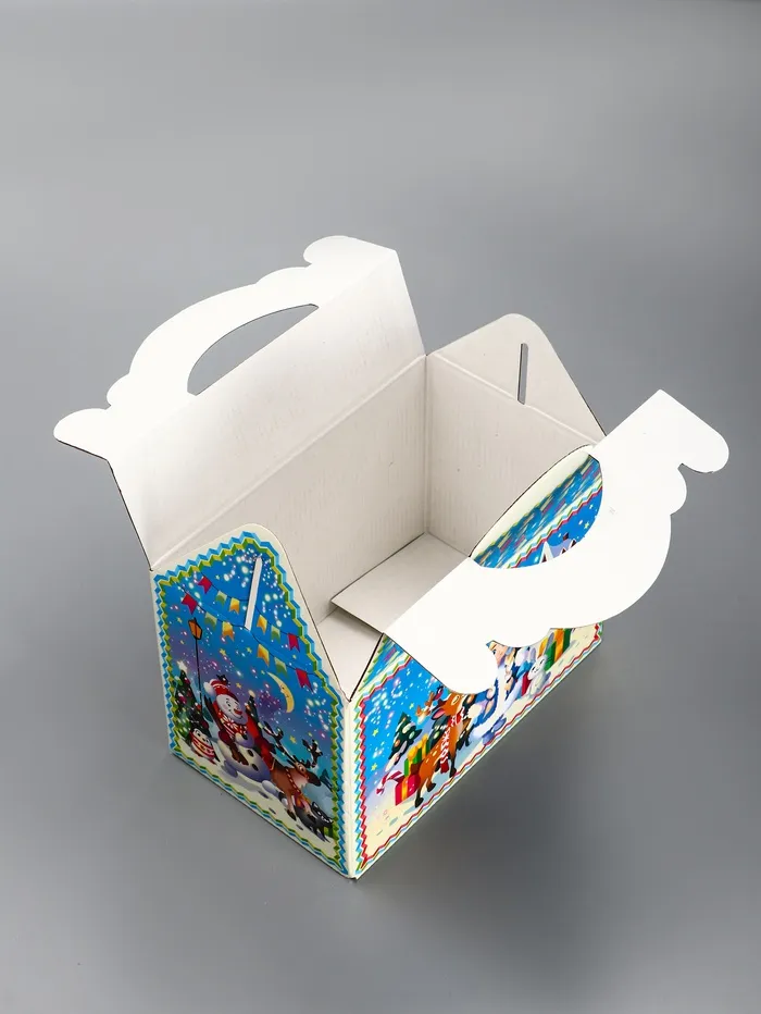 - Качественные материалы: Плотный картон сохраняет форму даже при наполнении тяжелыми сладостями. Упаковка не мнётся при транспортировке и выглядит презентабельно.