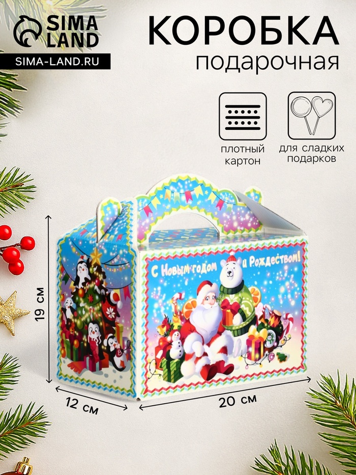 - Сбалансированный формат: Размеры 20×12×19 см подходят для наборов конфет, шоколадных плиток или небольших новогодних сувениров. Прямоугольная форма обеспечивает устойчивость и удобное наполнение.