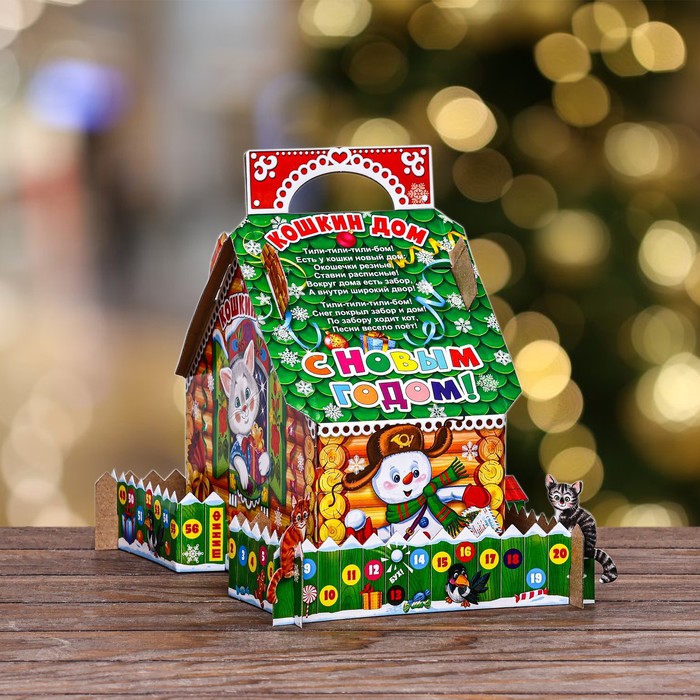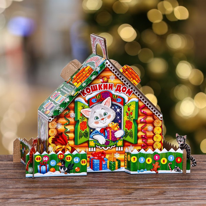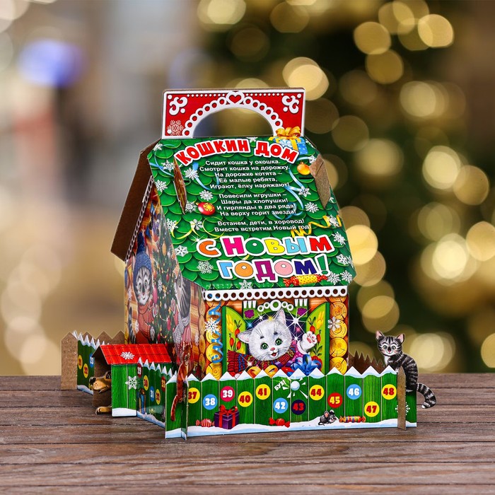 Подарочная новогодняя коробка «Кошкин дом», 22.5×23×12.5 см — Характеристики