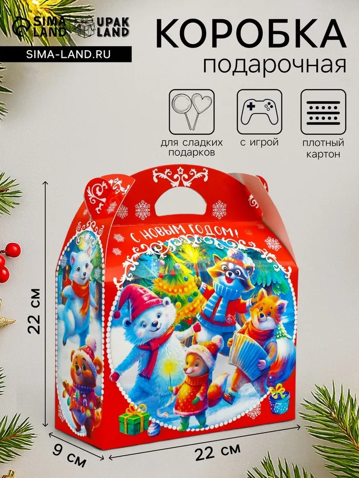 Подарочная новогодняя коробка «Лесные колядки», Баул 22×9×22 см — Характеристики