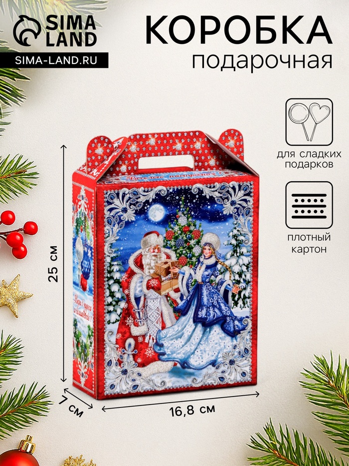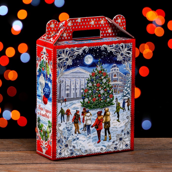 Подарочная новогодняя коробка «На Катке», для сладких подарков, 16.8×7×25 см — Характеристики