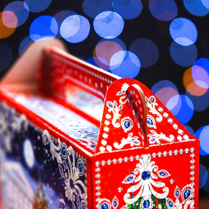 Коробка выполнена из качественных материалов, которые обеспечивают сохранность содержимого. Она имеет яркий и красочный дизайн, который отражает атмосферу Нового года.