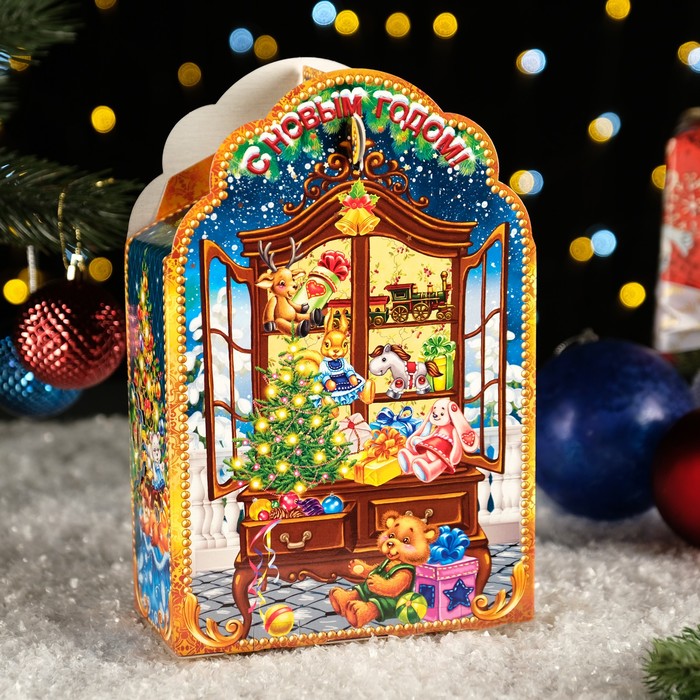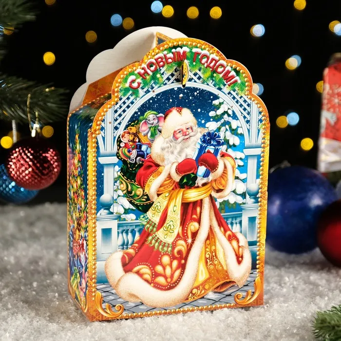 Коробка выполнена из качественных материалов, которые обеспечивают сохранность содержимого. Она имеет яркий и красочный дизайн, который отражает атмосферу Нового года.