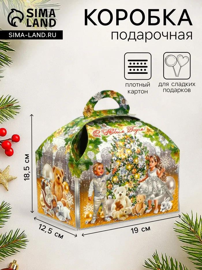 Подарочная новогодняя коробка предназначена для использования на утренниках и для подарков под ёлку для детей. Эта коробка создана специально для того, чтобы сделать праздник еще более ярким и запоминающимся.