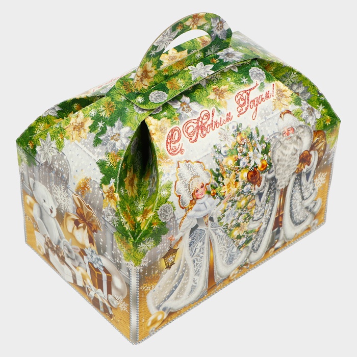 Коробка выполнена из качественных материалов, которые обеспечивают сохранность содержимого. Она имеет яркий и красочный дизайн, который отражает атмосферу Нового года.
