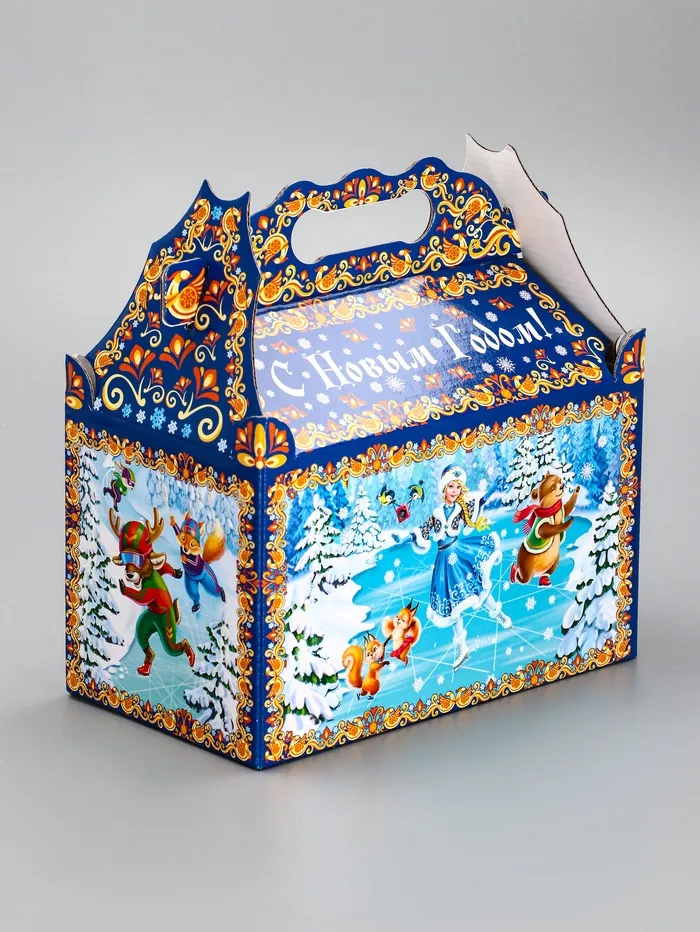 Объедините праздник и спортивный дух! Новогодняя коробка «Олимпиада» — это тематическая упаковка для сладких подарков. Динамичный дизайн с зимними видами спорта создаёт атмосферу движения и радости, идеально подходя для активных и современных поздравлений.