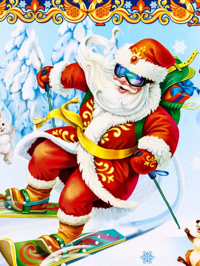 - Спортивная тематика: Яркое изображение лыжников и снежинок передаёт энергию зимних забав. Такой дизайн особенно подходит для подарков детям и любителям активного отдыха.
