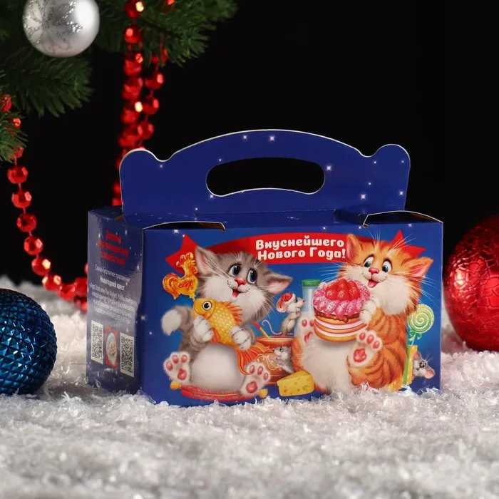 Коробка выполнена из качественных материалов, которые обеспечивают сохранность содержимого. Она имеет яркий и красочный дизайн, который отражает атмосферу Нового года.