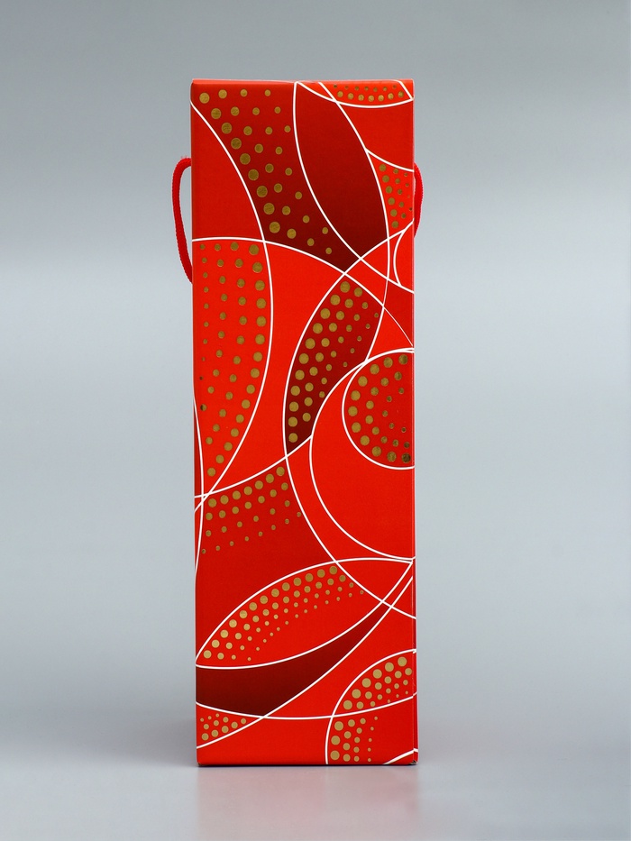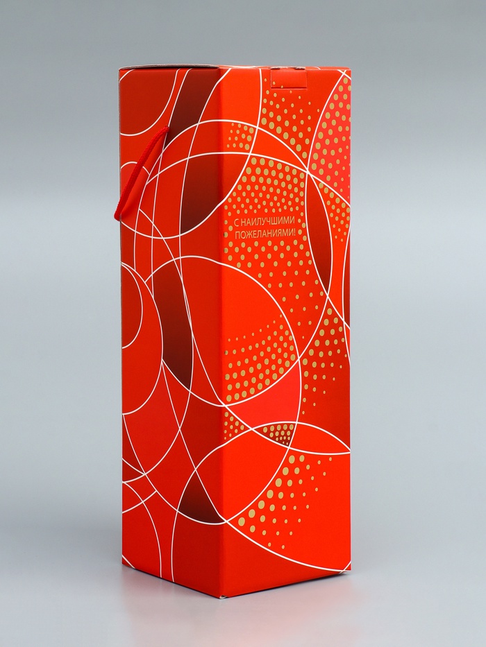 Подарочная новогодняя коробка под шампанское «Огненная» красная с веревочной ручкой 11×11×37 см — Характеристики