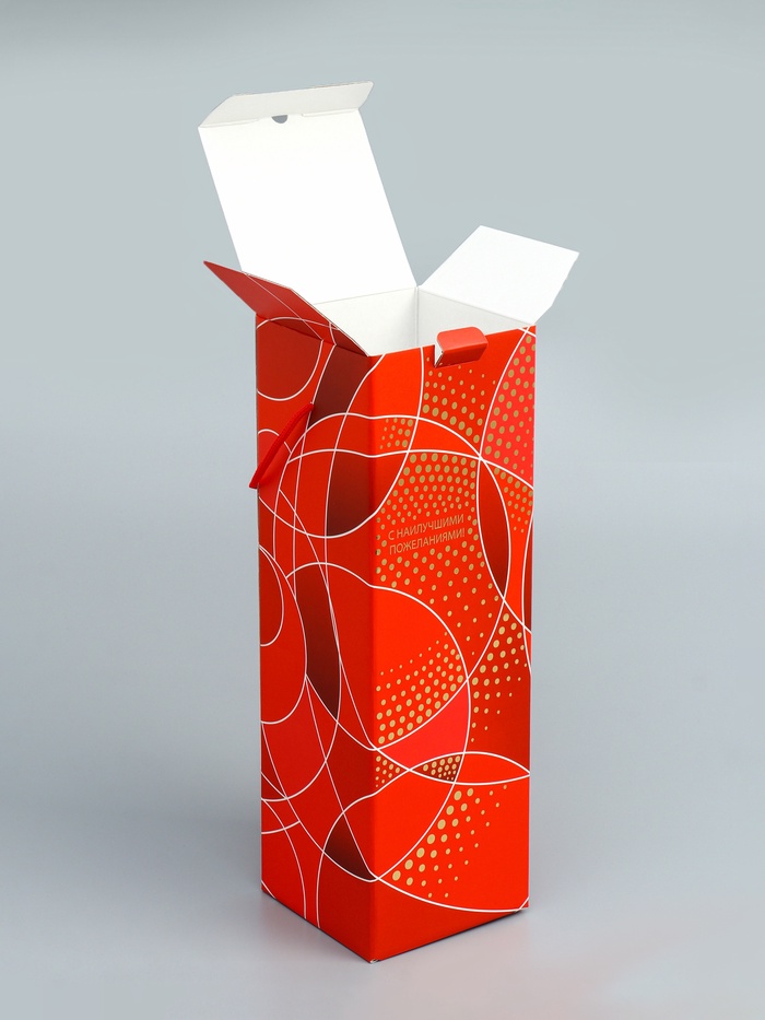 Завершающий штрих к подарку: Эта коробка делает бутылку шампанского самостоятельным презентом, достойным новогоднего стола. Выбирайте «Огненную» упаковку, когда важно подчеркнуть торжественность момента и создать праздничное настроение!
