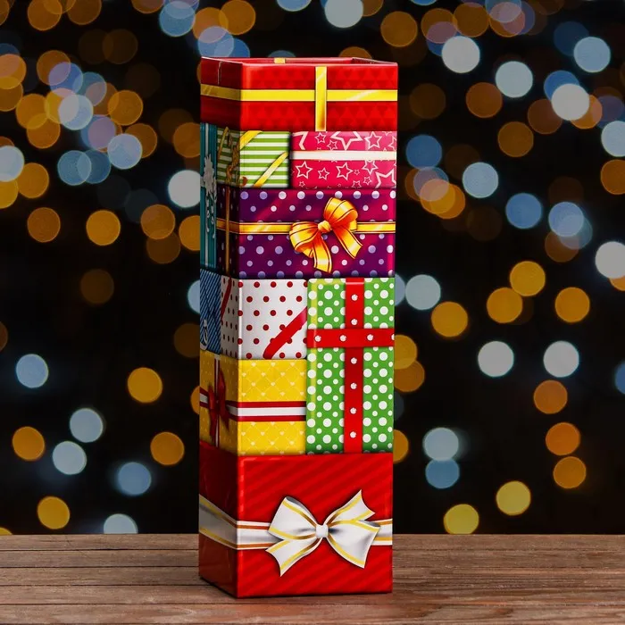 Подарочная новогодняя коробка «Подарки» , Башня 12×12×40 см — Характеристики
