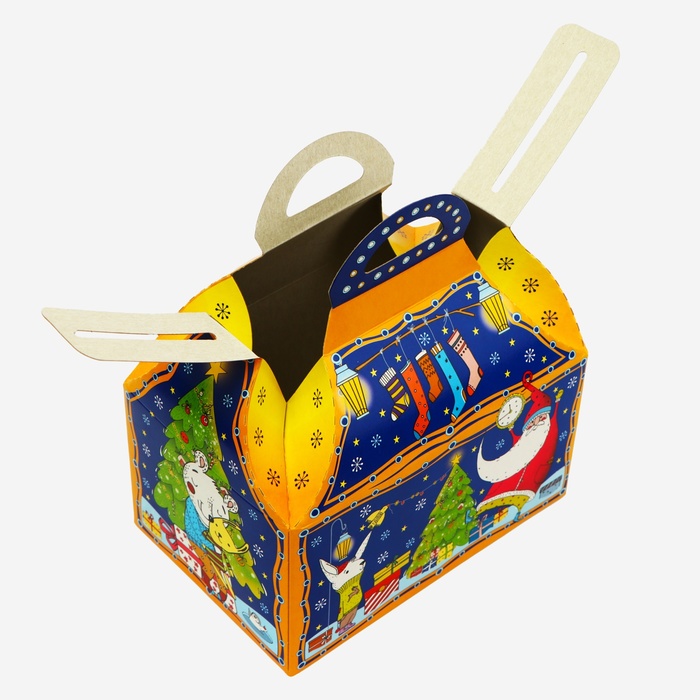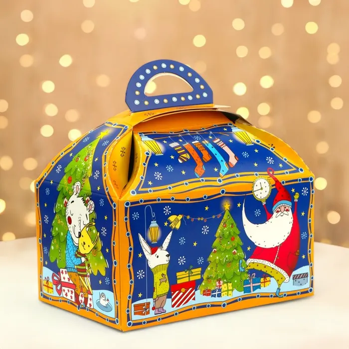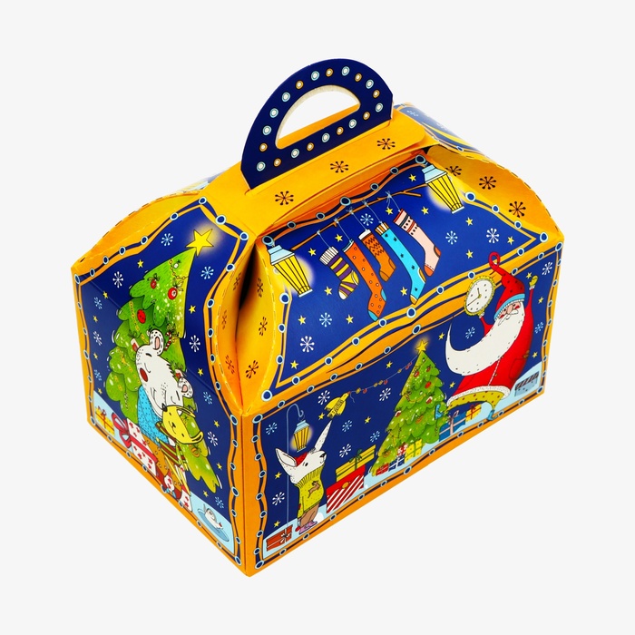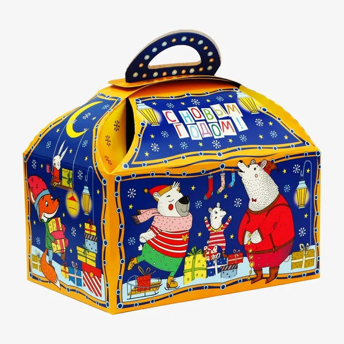 Коробка выполнена из качественных материалов, которые обеспечивают сохранность содержимого. Она имеет яркий и красочный дизайн, который отражает атмосферу Нового года.