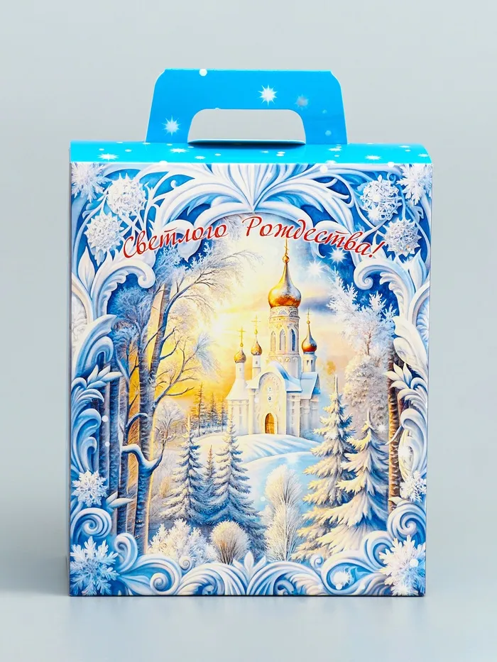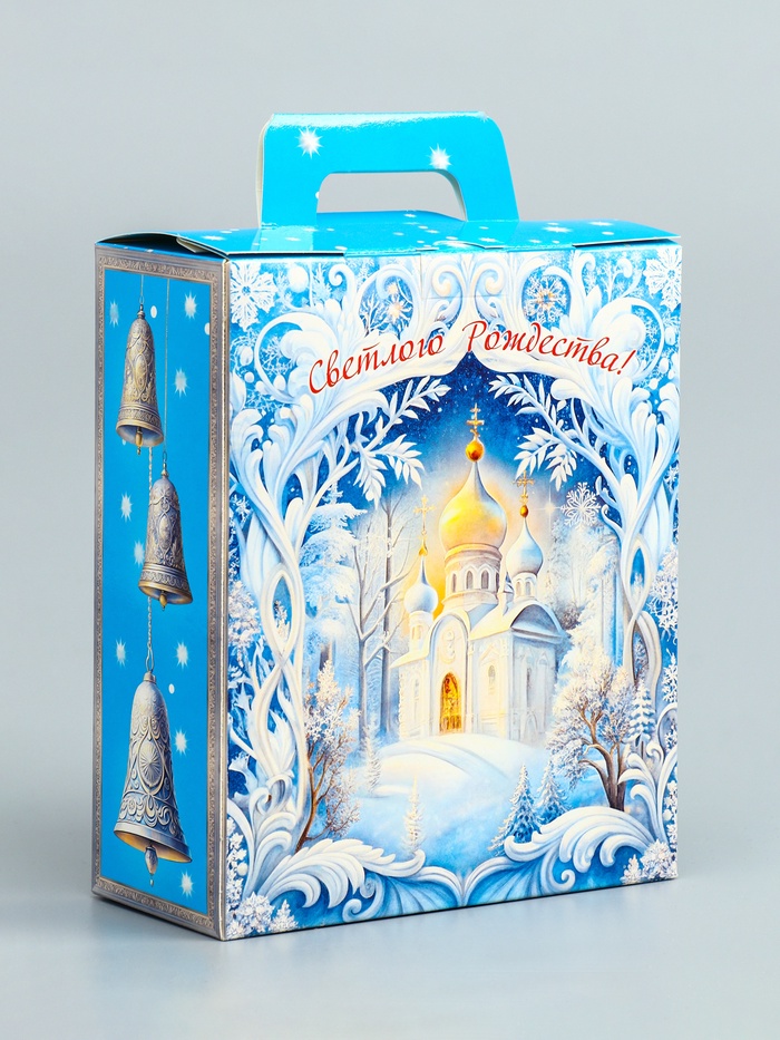 Звон колокольчиков в изящной упаковке! Новогодняя коробка «Рождественский звон» — стильное решение для праздничных подарков. Её нежный голубой цвет и зимние узоры создают атмосферу волшебства.