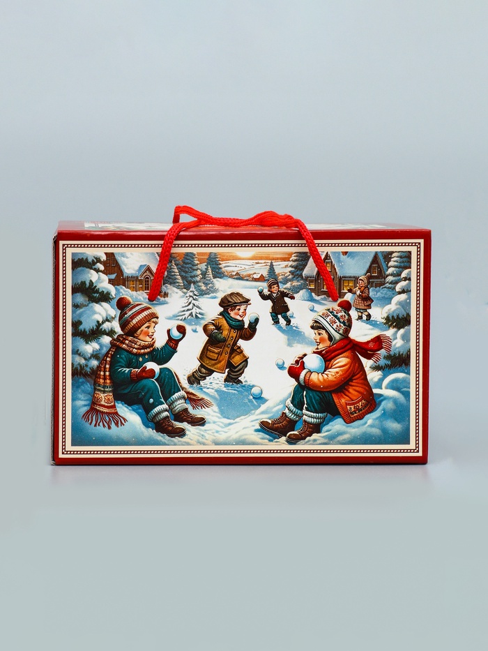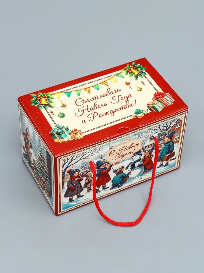- Яркий праздничный дизайн: Традиционные зимние узоры и тематические надписи создают нужное настроение. Коробка выглядит как специально упакованный новогодний сюрприз.