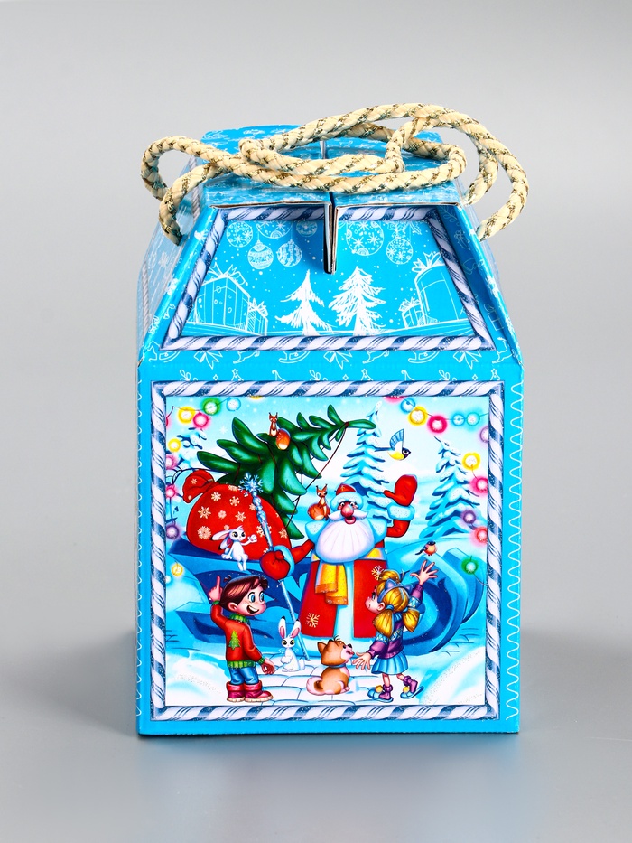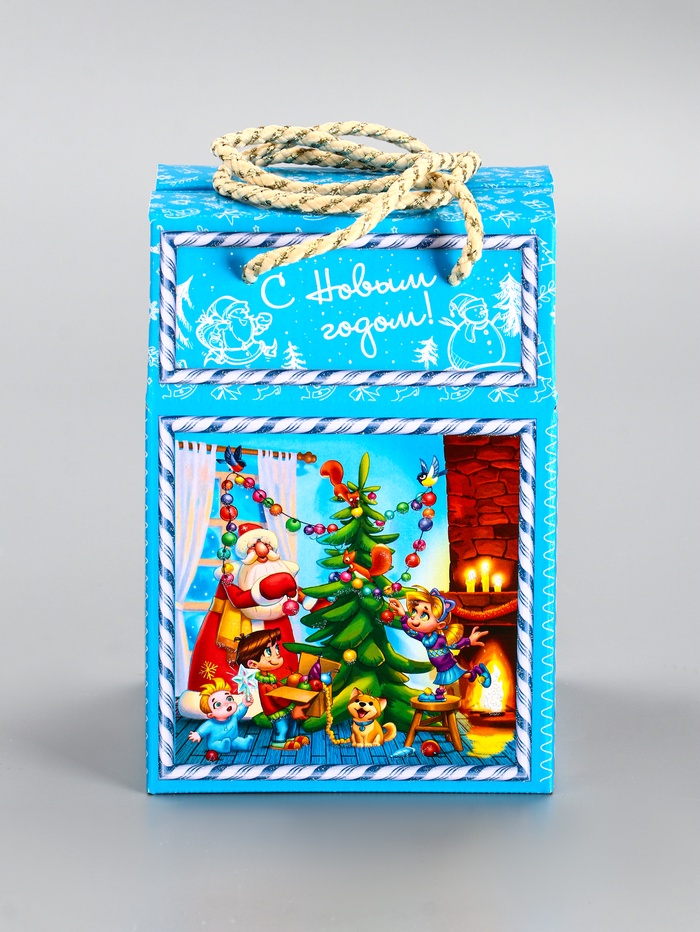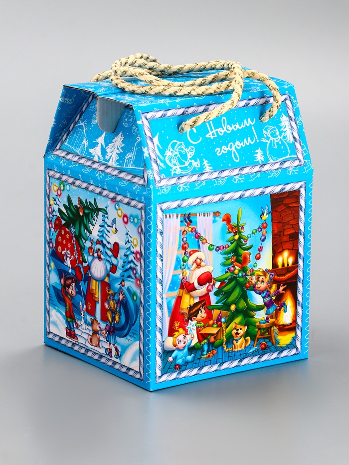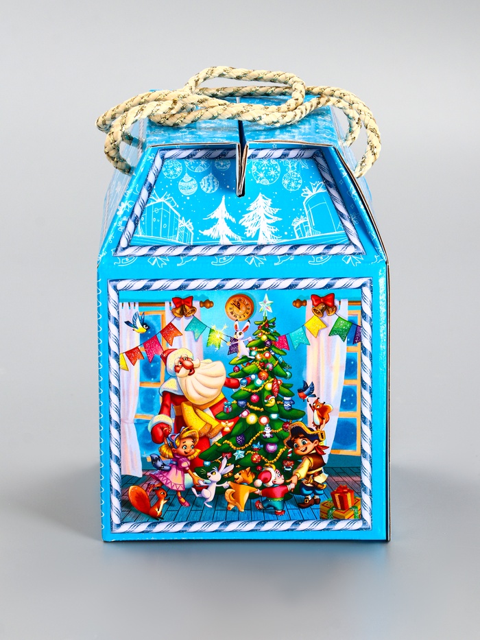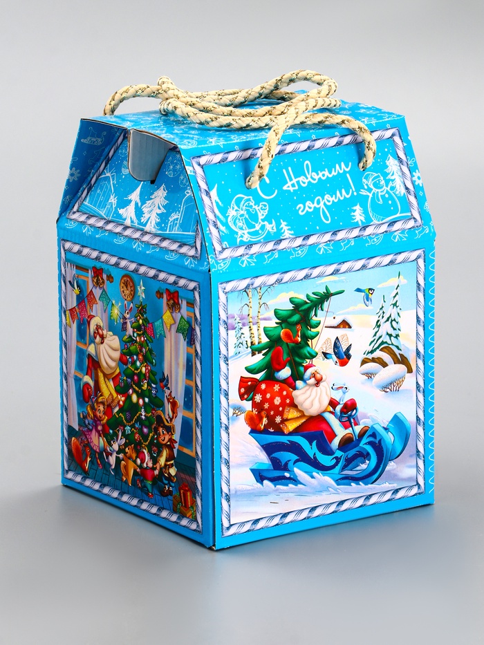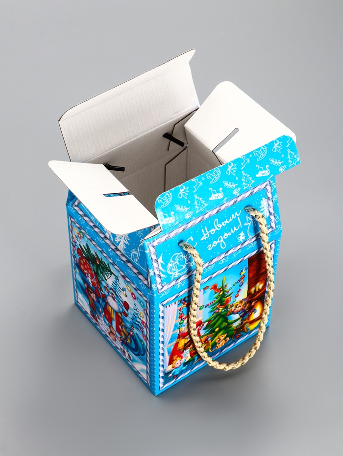 - Сезонный дизайн: Голубой фон со снежными узорами создаёт универсальное зимнее оформление без привязки к символу года. Коробку можно использовать несколько сезонов подряд.