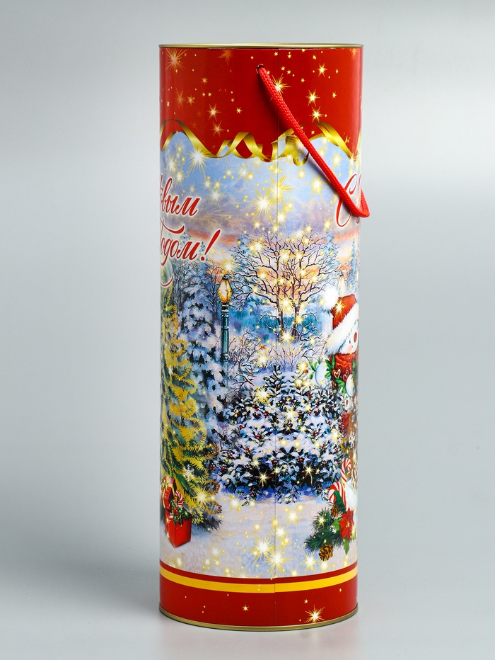 Роскошная упаковка для новогодних напитков! Тубус для бутылки «Золотая елочка» 12×34,5 см — стильная жёсткая коробка в виде цилиндра для праздничного презента. Создаёт эффектную подачу алкогольных и безалкогольных напитков.