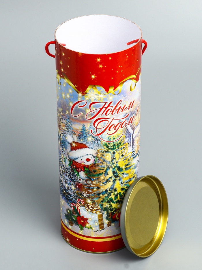 • Прочная конструкция: Комбинация картона и жести обеспечивает жёсткость и защиту содержимого. Крышка и дно плотно фиксируются.