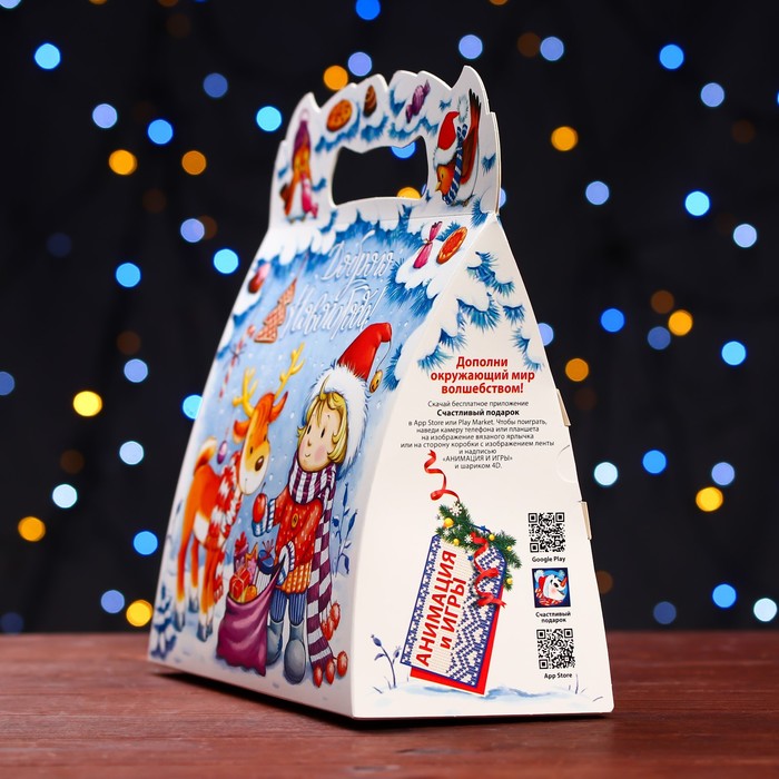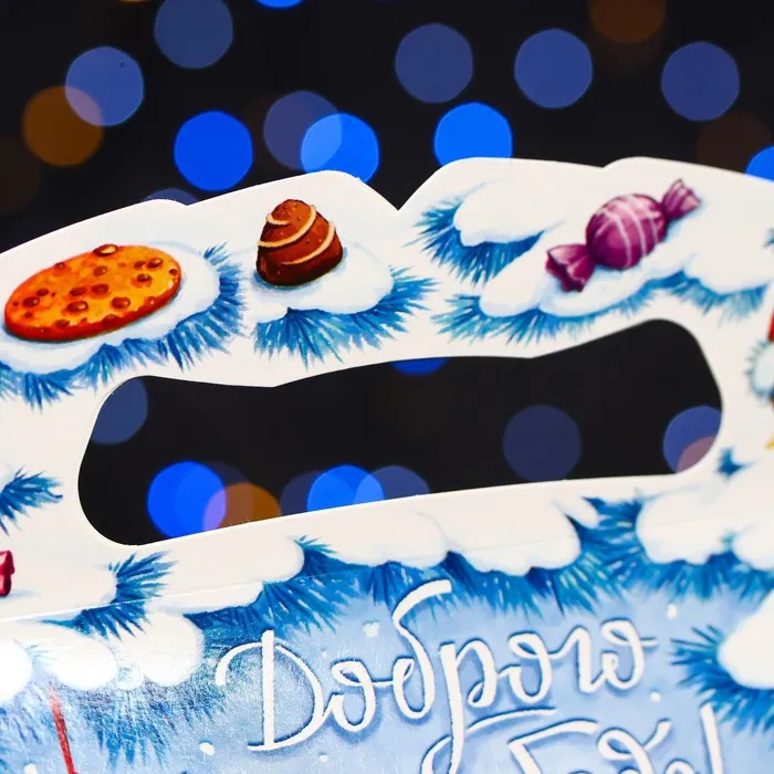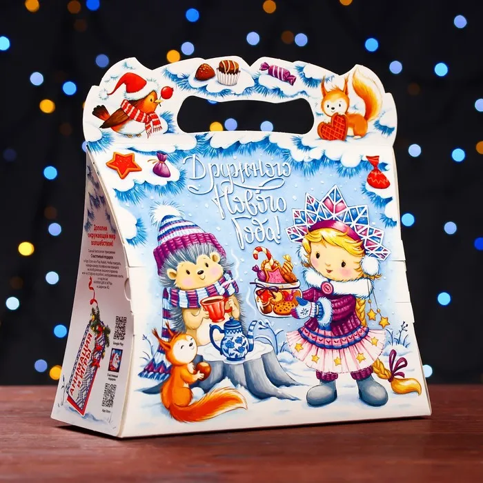 Коробка выполнена из качественных материалов, которые обеспечивают сохранность содержимого. Она имеет яркий и красочный дизайн, который отражает атмосферу Нового года.